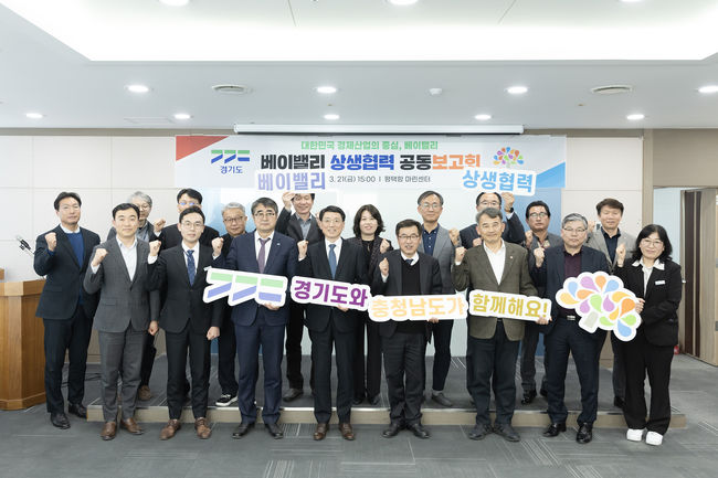 경기도와 충청남도는 평택항 마린센터에서 ‘베이밸리 상생협력사업 공동보고회’를 열고, 양 도 간 상생발전을 위한 13개 사업의 본격 추진을 선언했다. 보고회에는 김성중 경기도 행정1부지사와 전형식 충청남도 정무부지사, 양 도의 실·과장 등 30여 명이 참석했다.