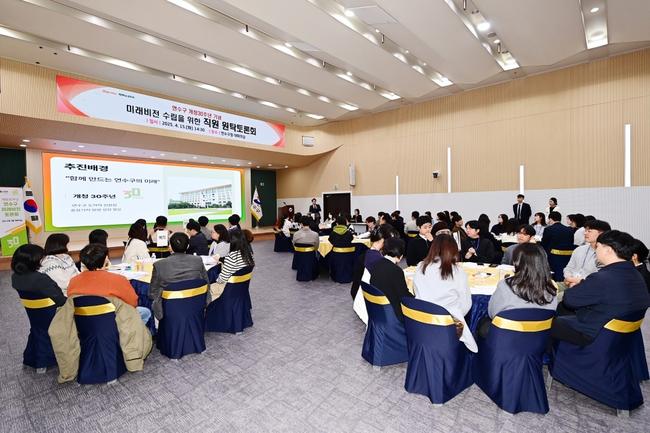 연수구(구청장 이재호)가 지난 15일 구청 대회의실에서 개청 30주년을 기념해 미래 비전 수립을 위한 `직원 원탁토론회`를 열었다.