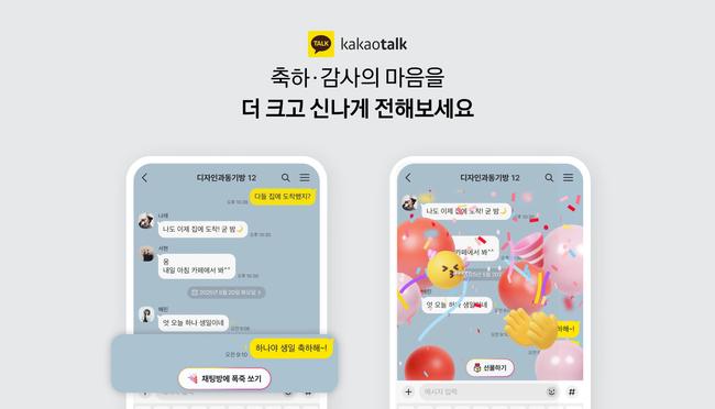 카카오는 6일, 이용자가 카카오톡 채팅방에서 주고받는 축하·감사 메시지에 반응하는 리액션 기능을 새롭게 출시했다. 이 기능은 대화 중 ‘생일 축하해’, ‘부모님 감사해요’ 등 특정 감정 표현 키워드를 자동 인식해 채팅방에 폭죽, 꽃뿌리기 등 시각적 효과를 띄워주는 방식이다.