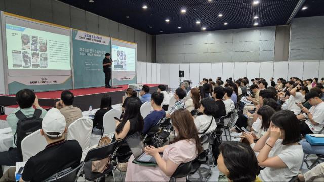 이지웹피아 배정홍 대표가 글로벌 유통 세미나에서 강연하고 있다