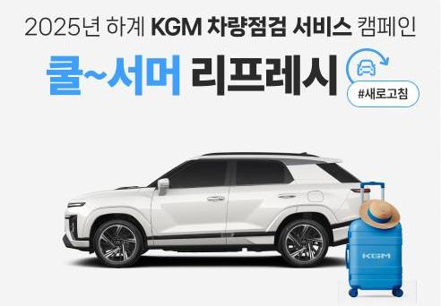 특히, 신차 `액티언 하이브리드` 출시에 맞춰 고객 감사의 의미로 진행되는 이번 차량점검 서비스 오는 18일까지 군포 광역서비스센터를 포함해 전국 310 여개 서비스 네트워크에서 KGM 전 차종(대형 상용차 제외)을 대상으로 실시한다.