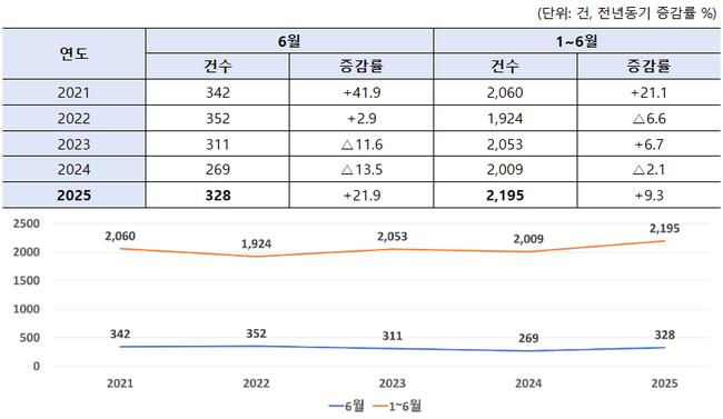 이 밖에 인도네시아가 화학 세라믹과 철강 인증 등 44개 품목에 대해 규제를 확대하면서 아시아 지역의 통보 건수는 419건으로, 전년 대비 38.3% 급증했다. 이는 지역별 증가율 중 가장 높은 수치다. 아프리카는 932건(+7.4%), 북미는 262건(+6.9%)을 각각 기록했다.