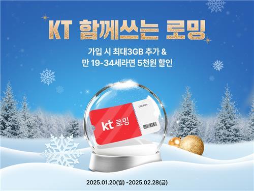 KT(대표이사 김영섭)가 새해를 맞아 해외여행객들의 데이터 부담을 덜어주기 위한 `로밍 데이터 추가 프로모션`을 실시한다고 20일 밝혔다.