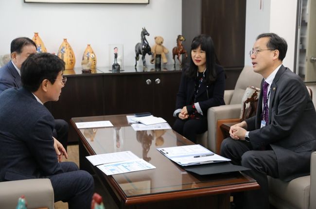 `2025년 전국사업체조사` 대상 사업체인 금수티아이(주)를 방문하여 조사에 대해 설명하고 조사 협조를 당부하는 이형일 청장(오른쪽 첫번째)