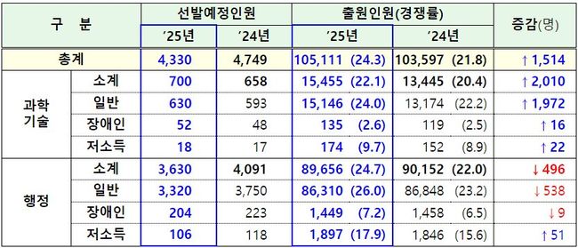 • 4,330명 선발에 10만 5,111명 지원… 응시자 수 1.5% 증가