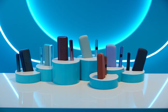 왼쪽부터 아이코스 일루마 i 프라임 미드나잇 블랙, 브리즈 블루, 가넷 레드. 아이코스 일루마 i 브리즈 블루, 비비드 테라코타, 디지털 바이올렛, 미드나잇 블랙