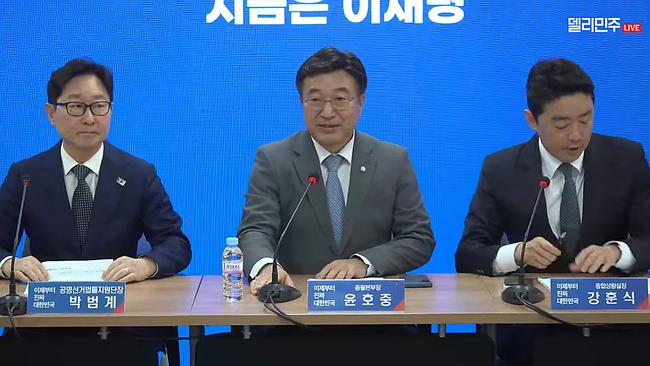 천준호 전략본부장은 “윤석열-한덕수-조희대로 이어지는 내란 세력의 3단계 대선 개입 시도가 진행 중”이라며 “이는 사법 살인에 준하는 이재명 죽이기의 연장선”이라고 주장했다. 그는 “정권 재창출을 위한 단일화 압박도 국민주권을 무시한 날치기”라며 “국민은 이를 외면하지 않을 것”이라고 말했다.