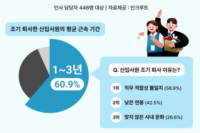 기업 60.9%, “신입사원 1~3년 내 퇴사”…직무 부적합이 최대 원인