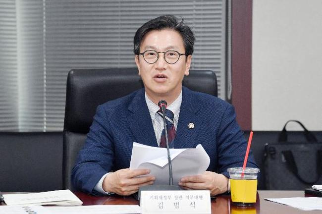 김범석 기획재정부 장관 직무대행 1차관이 지난 5월 20일 오후 서울 종로구 한국무역보험공사에서 열린 `제5차 지속가능경제 정책협의회`를 주재, 모두발언을 하고 있다.