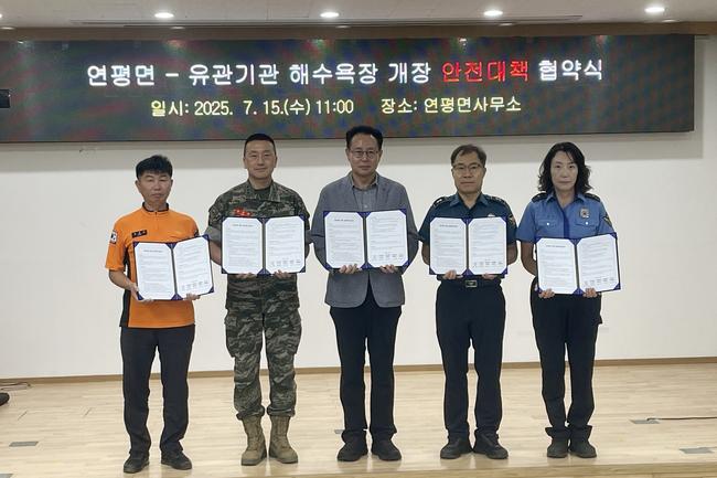 옹진군 연평면(면장 황준철)은 지난 15일, 연평면사무소에서 유관기관(해병대 연평부대, 연평파출소, 연평해경파출소, 연평119지역대)과 함께 안전하고 효율적인 해수욕장 운영과 지원을 위한 상호협력을 다지는 `연평면-유관기관 해수욕장 개장 안전대책 협약`을 체결했다고 밝혔다.