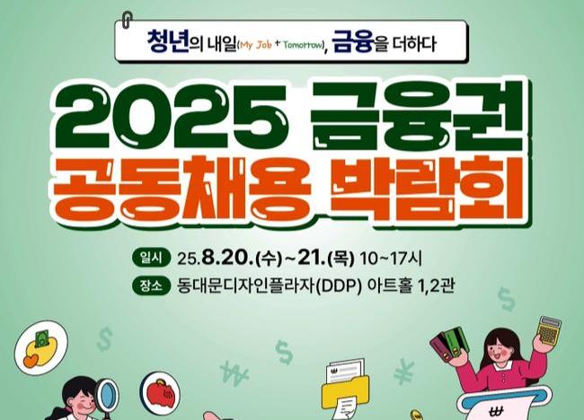 청년 구직자와 금융기관을 연결하는 국내 최대 금융 취업 행사 `2025 금융권 공동채용 박람회`가 8월 20일부터 서울 동대문디자인플라자에서 열린다.