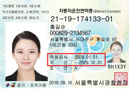올해 운전면허 적성검사‧갱신 대상자가 역대 최고 인원인 약 489만 명에 달한다. 운전면허증에서 적성검사 기간을 확인할 수 있다.