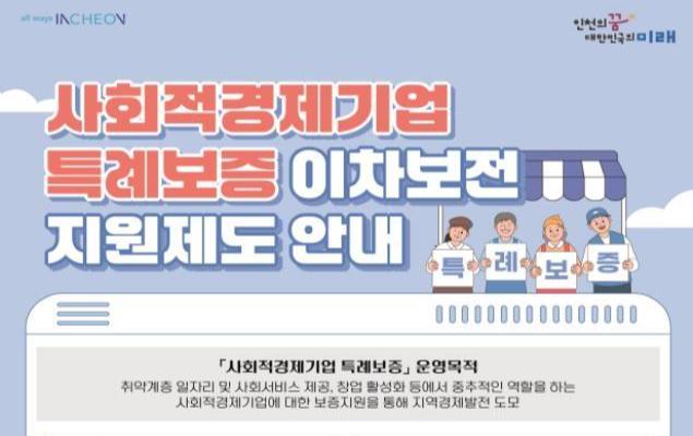 이는 지속적인 경기침체로 인해 매출 감소 등 어려움을 겪고 있는 사회적경제기업(사회적기업, 협동조합, 마을기업, 자활기업)들의 경영난 해소를 위한 조치로, 신용보증기금, 인천신용보증재단, 신한은행과 협력해 특례보증을 통한 이차보전(이자지원) 지원을 이어간다는 방침이다.